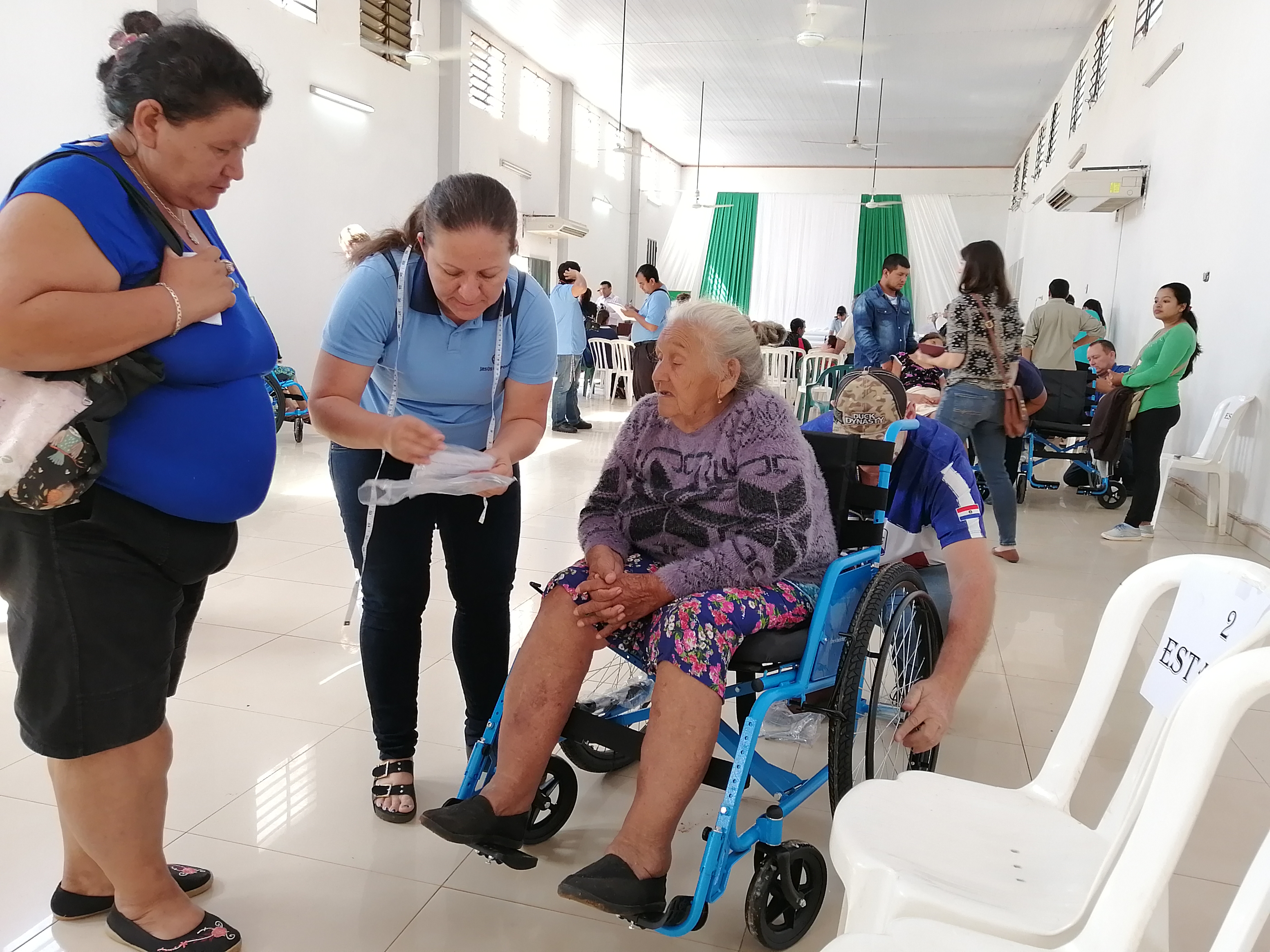 Un equipo de asistencia de JESÚS RESPONDE estuvo presente con el soporte y ajuste de las sillas de ruedas, todas fueron adaptadas perfectamente de acuerdo a la necesidad y medidas de cada usuario presente, parte del kit que fue donado contempla, una biblia que lleva esperanza a los hogares, además de las herramientas y un inflador para el mantenimiento de las sillas entregadas.