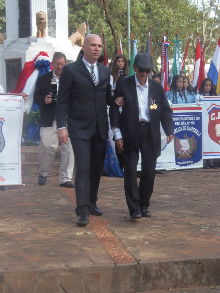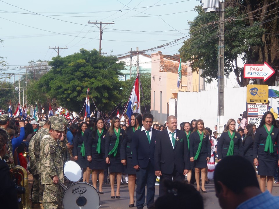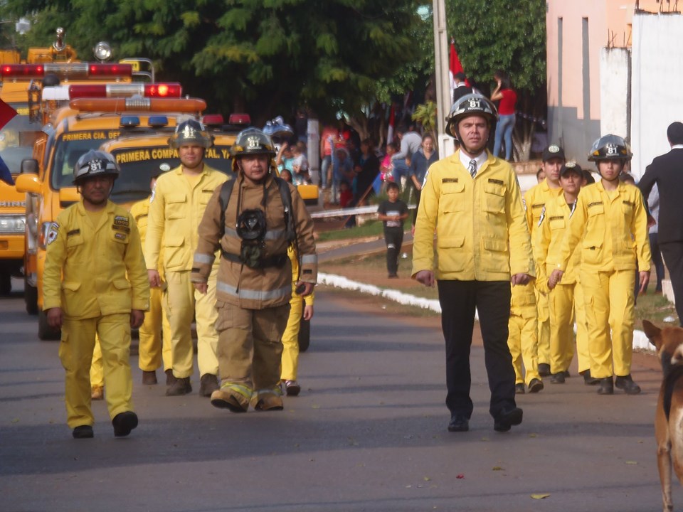 Nuestro Intendente desfilando con el Cuerpo de Bomberos Voluntarios de nuestra Ciudad de YAGUARÓN en el acto conmemorativo a La Paz del Chaco.