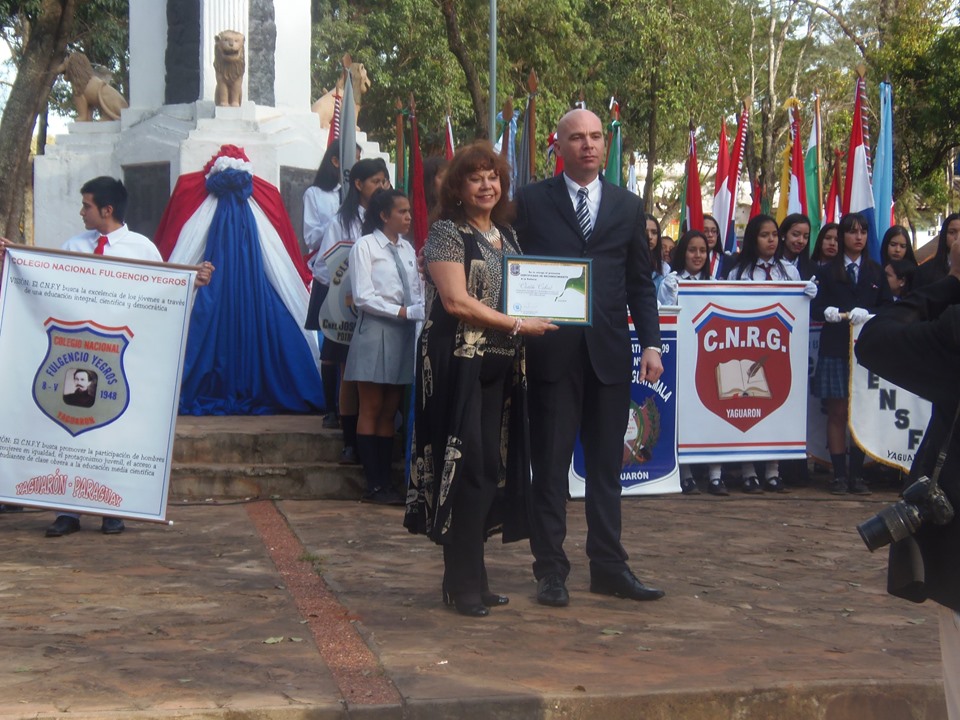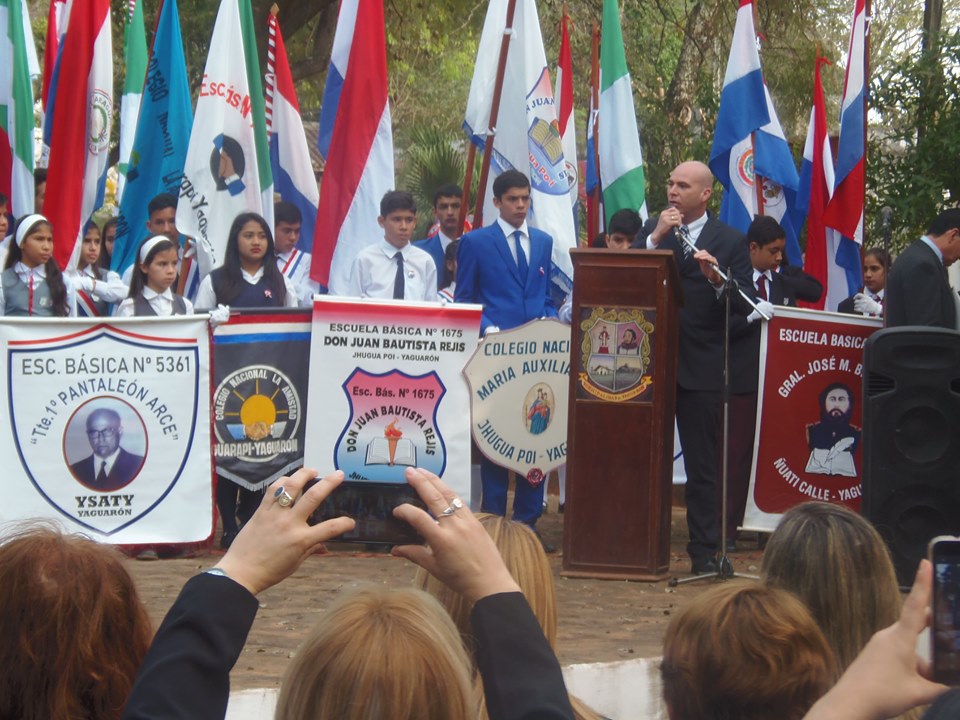 De la conmemoración participaron todas la Instituciones Educativos, Autoridades Locales y Departamentales, ademas de la distinguida actriz y Directora del Centro Cultural Carlos Colombino, Manzana de la Rivera, Señora Clotilde Cabral quien fuera homenajeada por su incansable labor en el ambito cultural.