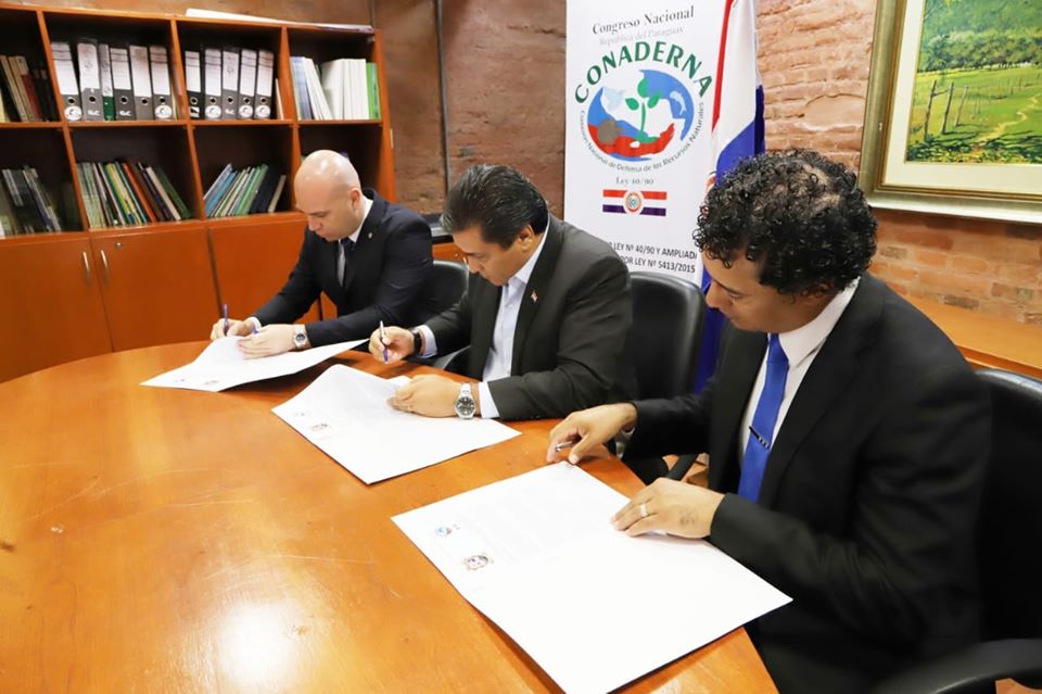 En fecha 27 de noviembre del año en curso el Senador Blas Lanzoni, Presidente de la Comisión Nacional de Defensa de los Recursos Naturales (CONADERNA), el Intendente Municipal de la ciudad de Yaguarón Luis Rodríguez, y el Concejal Municipal Luis Agüero, suscribieron un Convenio Marco así como un Convenio Específico de Cooperación Técnica Interinstitucional con el objetivo de fortalecer la gestión municipal en temas ambientales.