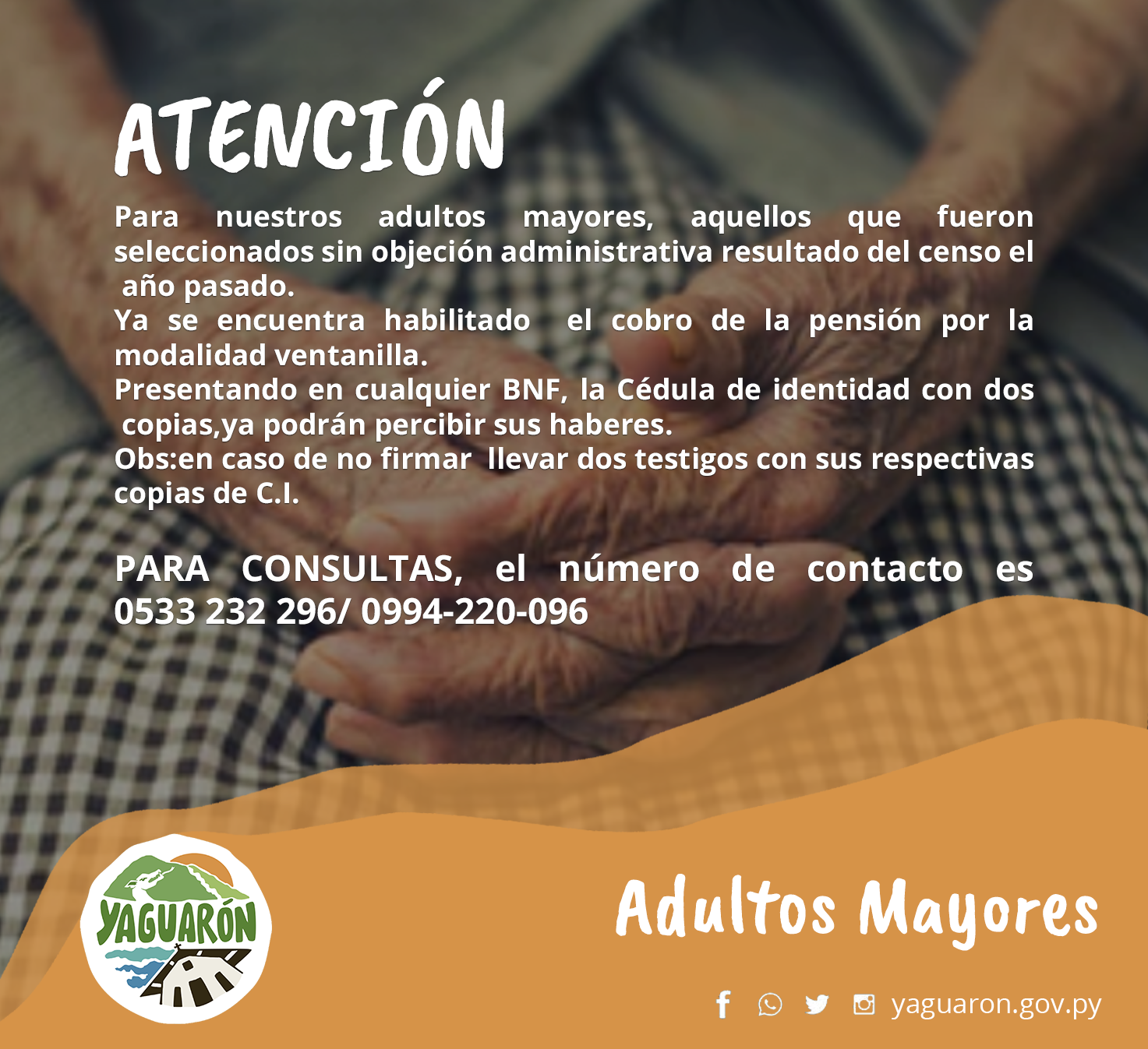 ATENCIÓN !! Para nuestros adultos mayores, aquellos que fueron seleccionados sin objeción administrativa resultado del censo el año pasado.