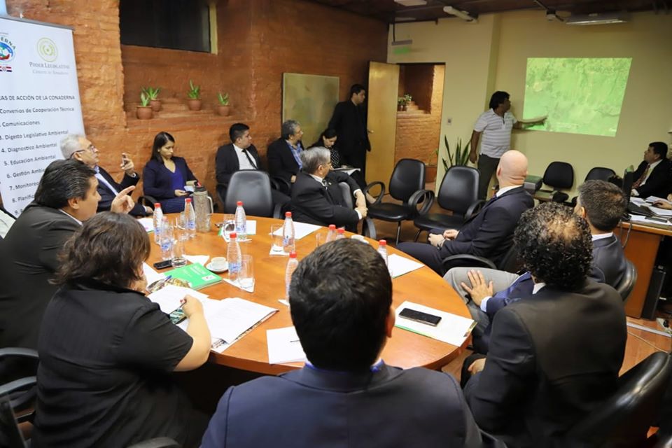El Senador Blas Lanzoni, Presidente de la Comisión Nacional de Defensa de los Recursos Naturales (CONADERNA) instaló una Mesa de Trabajo interinstitucional que se reunió esta mañana para dar seguimiento a las plantas de tratamiento de residuos instalados en la localidad de Yaguarón, Departamento de Paraguarí.