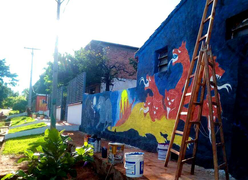 Con una imponente presencia avanzan las obras artísticas en el Paseo De Los Mitos. Se trata de murales pintados por artístas locales que quedarán como un atractivo turístico en nuestra ciudad y que por medio de la pintura se cuenta historias y mitos de nuestra querida ciudad de Yaguarón