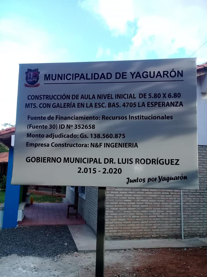 #JuntosPorYaguarón celebrando la apuesta de la Municipalidad en la mejora de la educación, invirtiendo en la Construcción de Aula Nivel Inicial con Baño Sexado Incluido en la Esc. Bás 4.705 La Esperanza – Conavi.