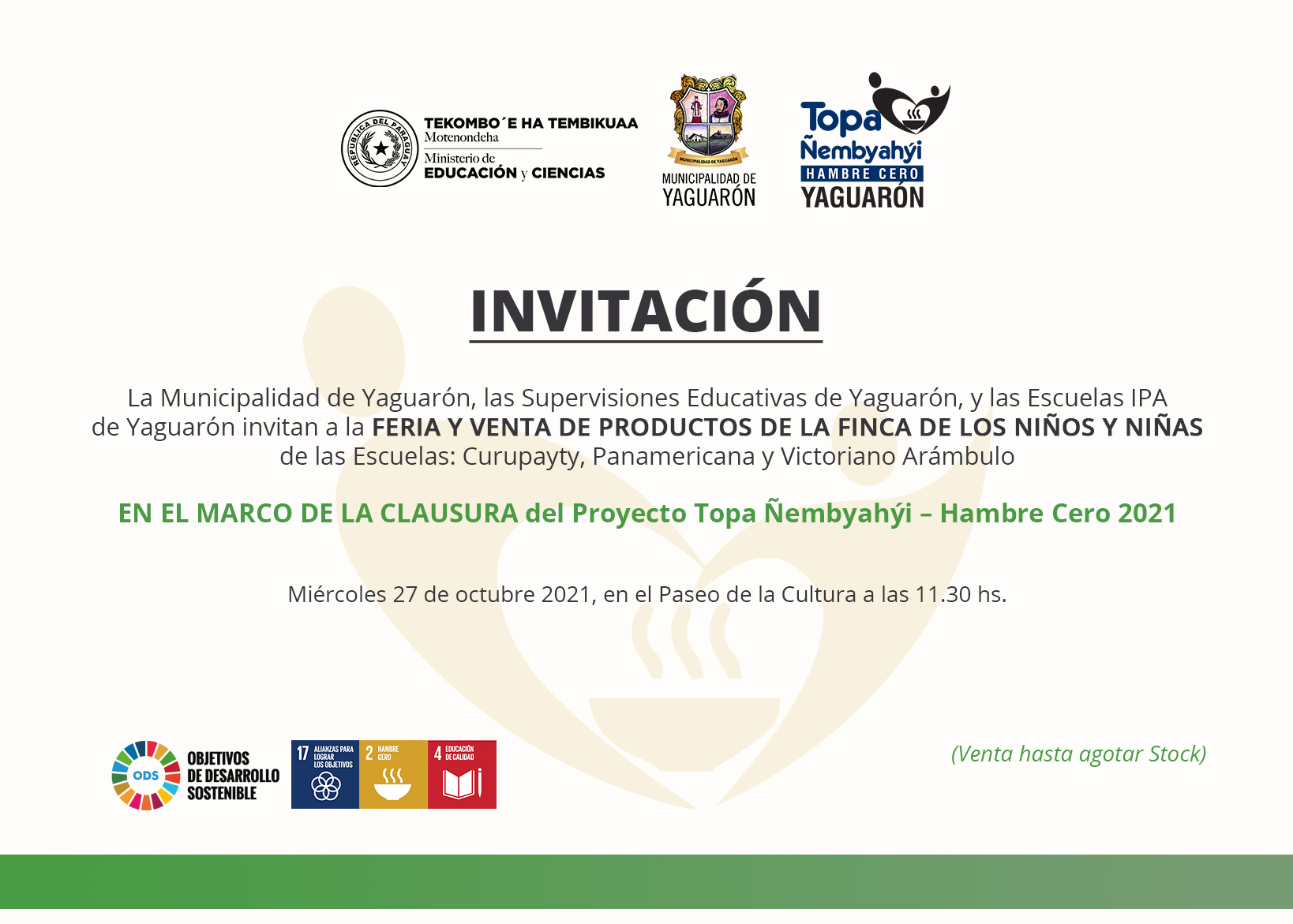 Este miércoles 27 de octubre realizamos la CLAUSURA 2021 del Proyecto Municipal Topa Ñembyahyi, Hambre Cero en Yaguarón, con impacto educativo, productivo y en empoderamiento económico en familias de Escuela IPA.