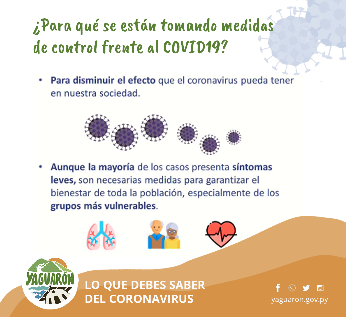 La decisión del Gobierno Nacional de suspender por 15 días todos los eventos públicos o privados de concurrencia masiva como: conciertos, prácticas deportivas, reuniones religiosas, actividades en lugares cerrados que incluyen a instituciones educativas, cines, teatros y convenciones, es a los efectos de reducir el riesgo de contagio del COVID-19 e impedir que las infecciones ocurran de modo masivo y, aunque se produzcan los contagios, lo hagan de un modo gradual, fundamentalmente para no colapsar los servicios de salud. Ministerio de Salud Paraguay