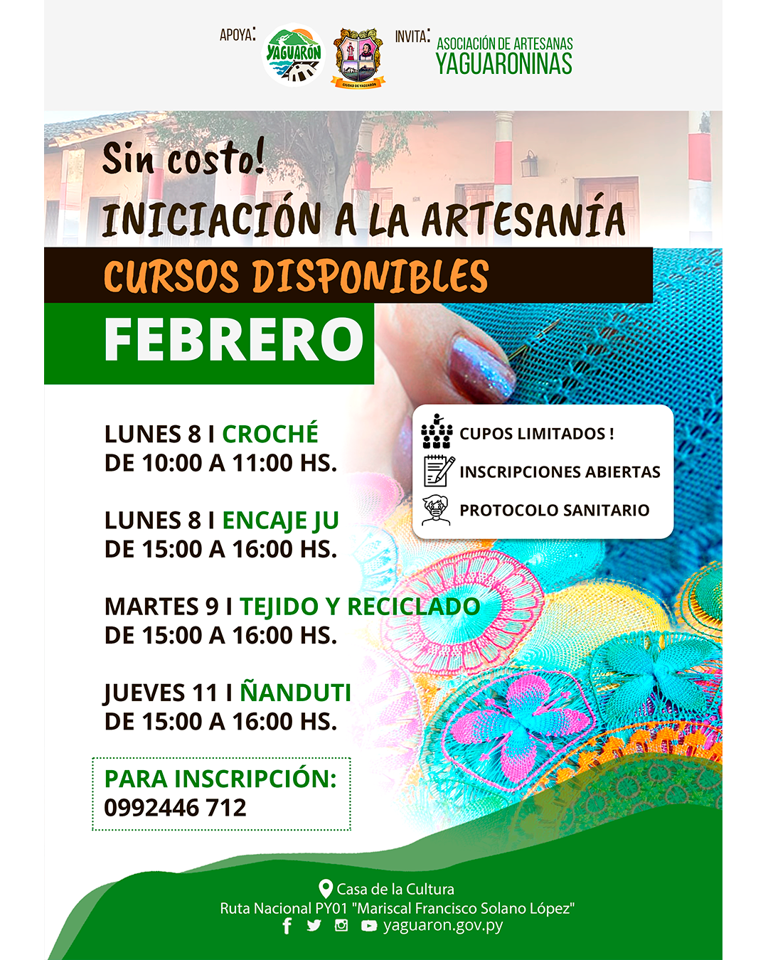 Abierta las inscripciones para los talleres de Encaje Ju, Ñandutí, Crochet, Tejidos y reciclados.