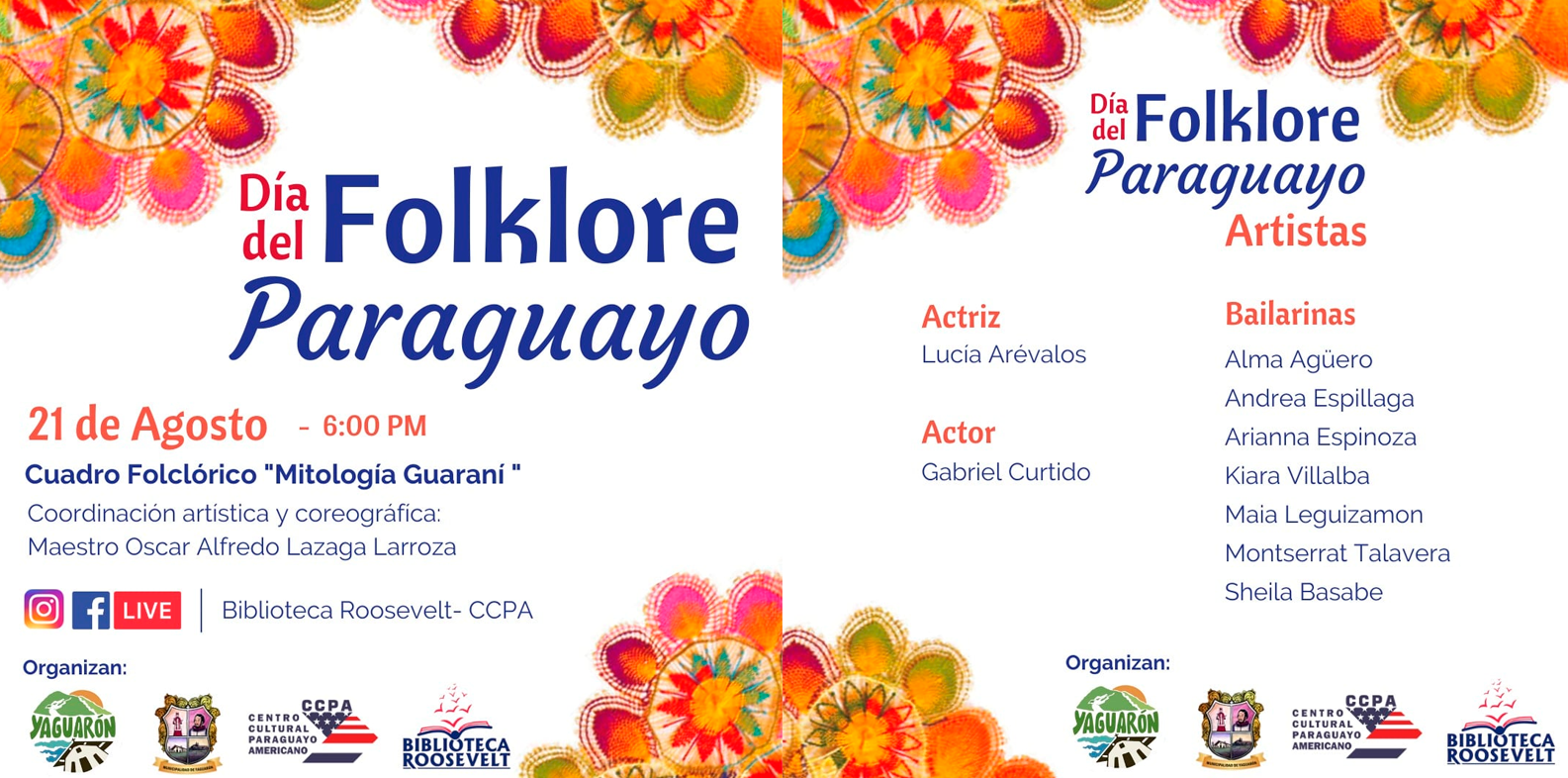Centro Cultural Paraguayo Americano en una transmisión de Facebook Live donde vamos a compartir un Cuadro Folklórico sobre «Mitología Guaraní» bajo la coordinación artística y coreográfica del Maestro Oscar Alfredo Lazaga Larroza.