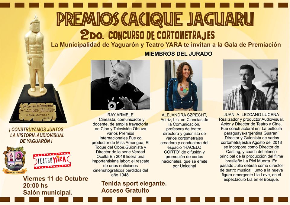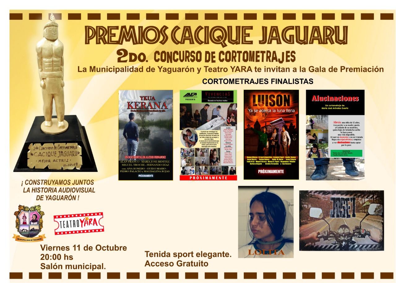 Les esperamos esta noche. Premiación del Concurso de Cortometraje Cacique Jaguaru, con los mejores jurados del Paraguay. Tenida: Sport Elegante