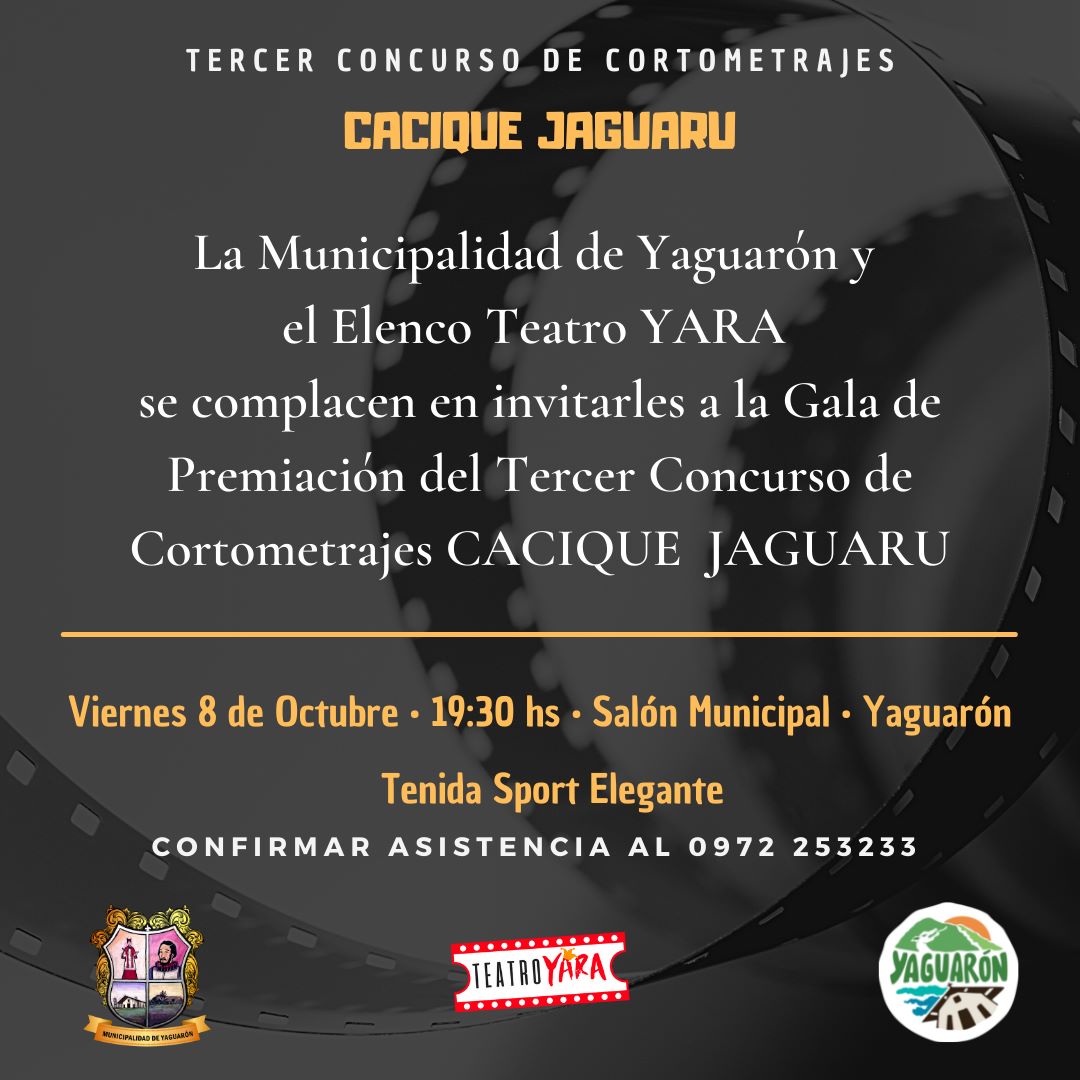 La Municipalidad de Yaguarón invita a la comunidad en general al Evento Gala de Premiación del Tercer Concurso de Cortometrajes Cacique Jaugaru