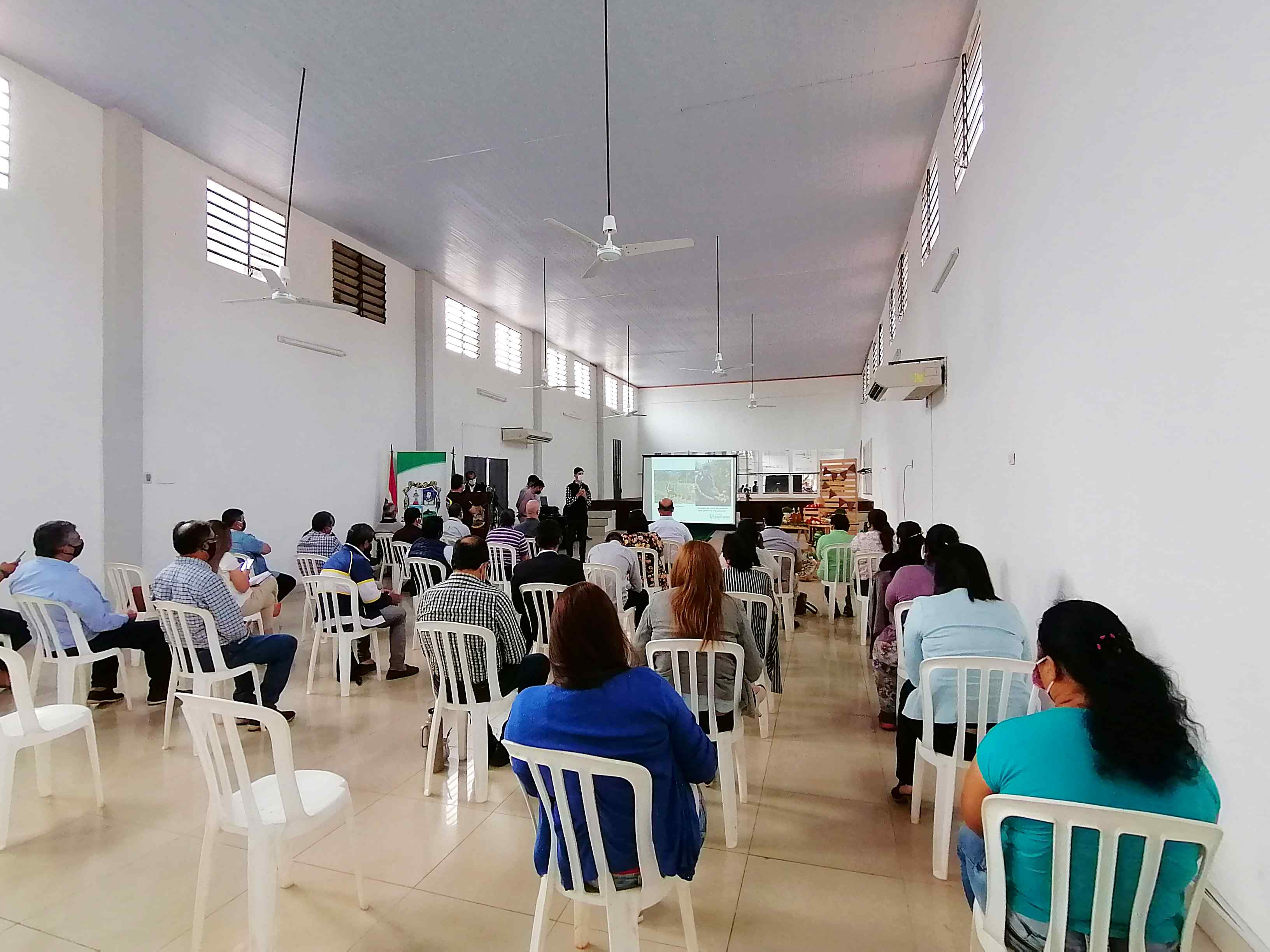 El Intendente de Yaguarón el Dr. Luis Rodríguez Lugo representantes de las escuelas IPA de Yaguarón, universidades públicas y privadas, la supervisión educativa, técnicos de agricultura de la municipalidad, productores, colaboradores, medios de comunicación e invitados especiales presentes en la exposición de INFORME DE PROYECTO AGROPECUARIO PARA PEQUEÑOS PRODUCTORES ASOCIADOS DE YAGUARÓN y presentación de resultados de la dirección de agricultura, llevado a cabo el día de hoy en el salón multiuso de la Municipalidad.