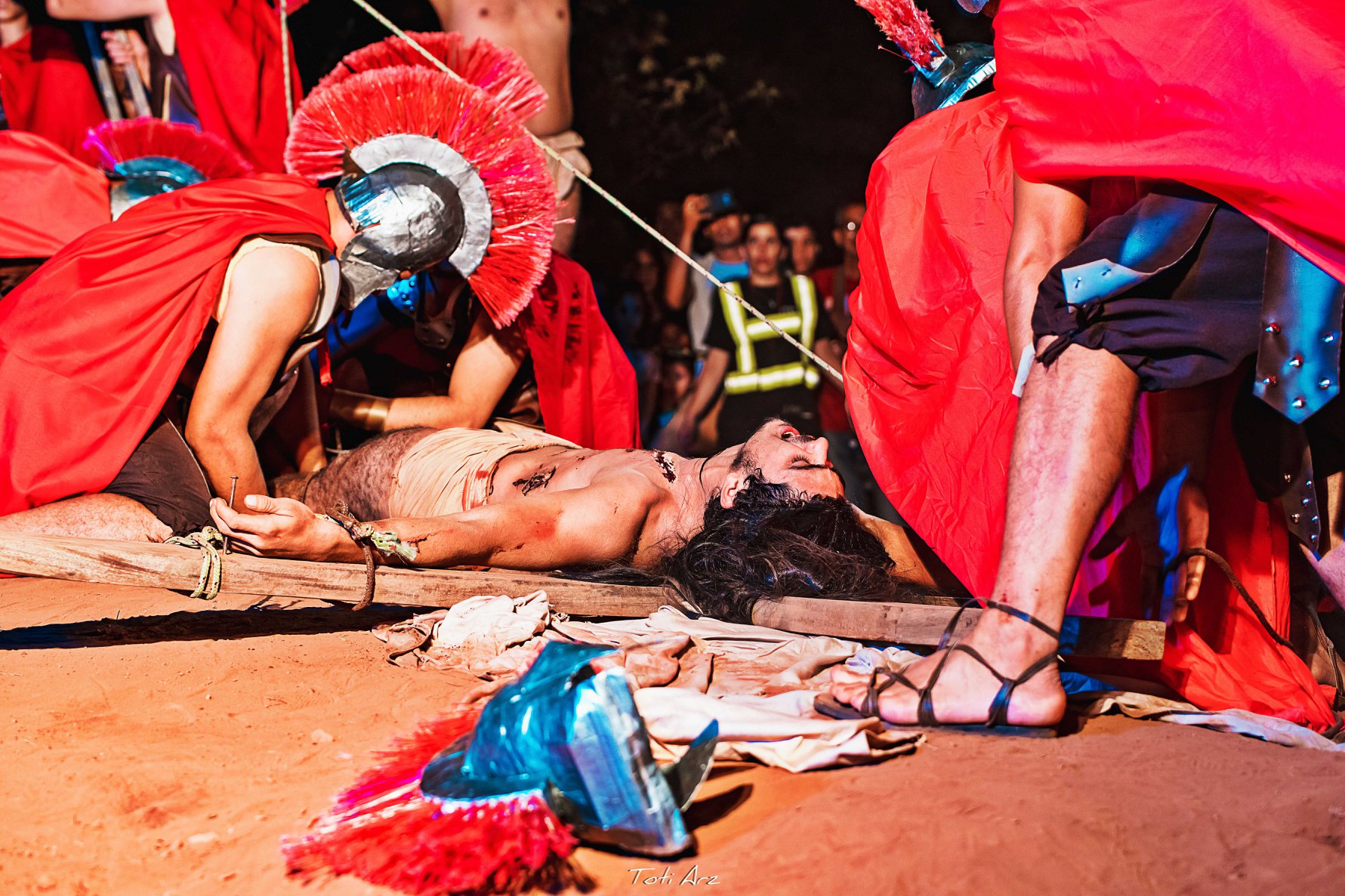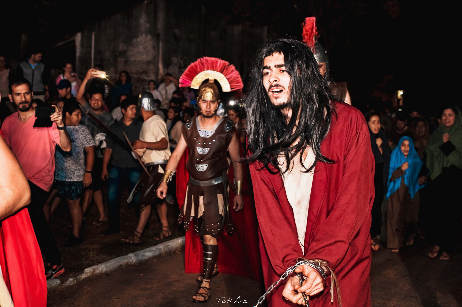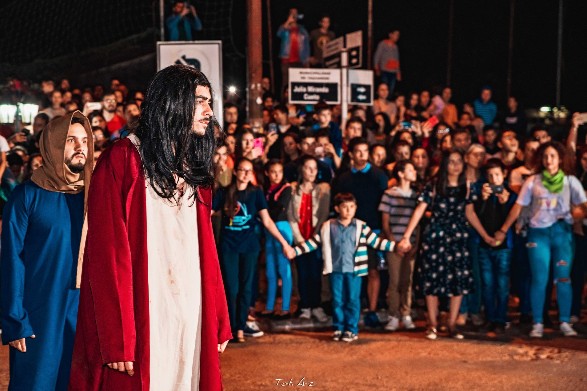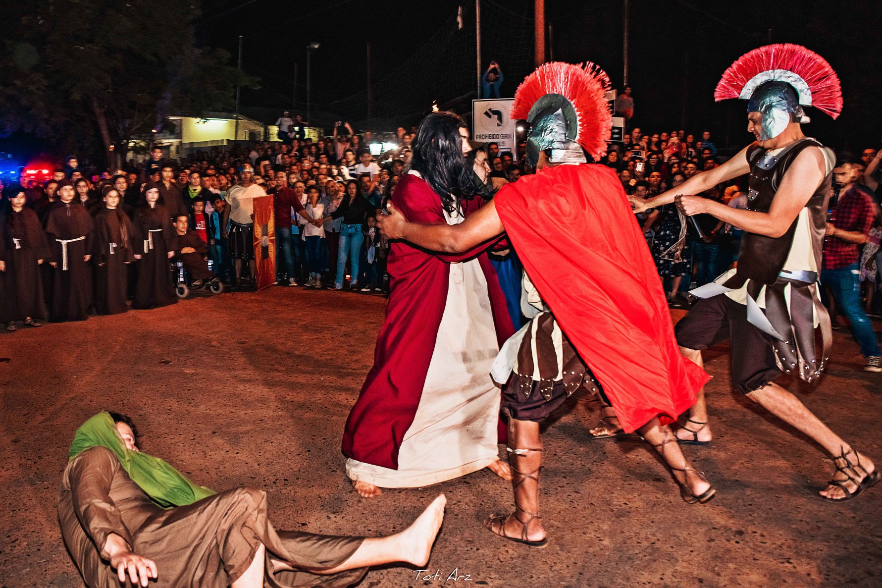 Compartimos las fotografías del exitoso Teatro Itinerante de Jueves Santo llevado a cabo por el Elenco Teatro YARA bajo la Dirección de Héctor Lozzca y la presentación estelar de actores y actrices yaguaroninos e invitados, jinetes de la ciudad y el Coro de Estacioneros de la Escuela de Música Maestro Cecilio Valiente. 10.000 personas de público y un despliegue de 100 artistas y 200 voluntarios e Instituciones aliadas para la cobertura de seguridad y servicios de emergencia. Este teatro es apoyado anualmente por la Municipalidad de Yaguarón en el marco del Programa Cultural de Semana Santa en Yaguarón. Fotos Propiedad de la Municipalidad de Yaguarón, tomadas por Toti Arz