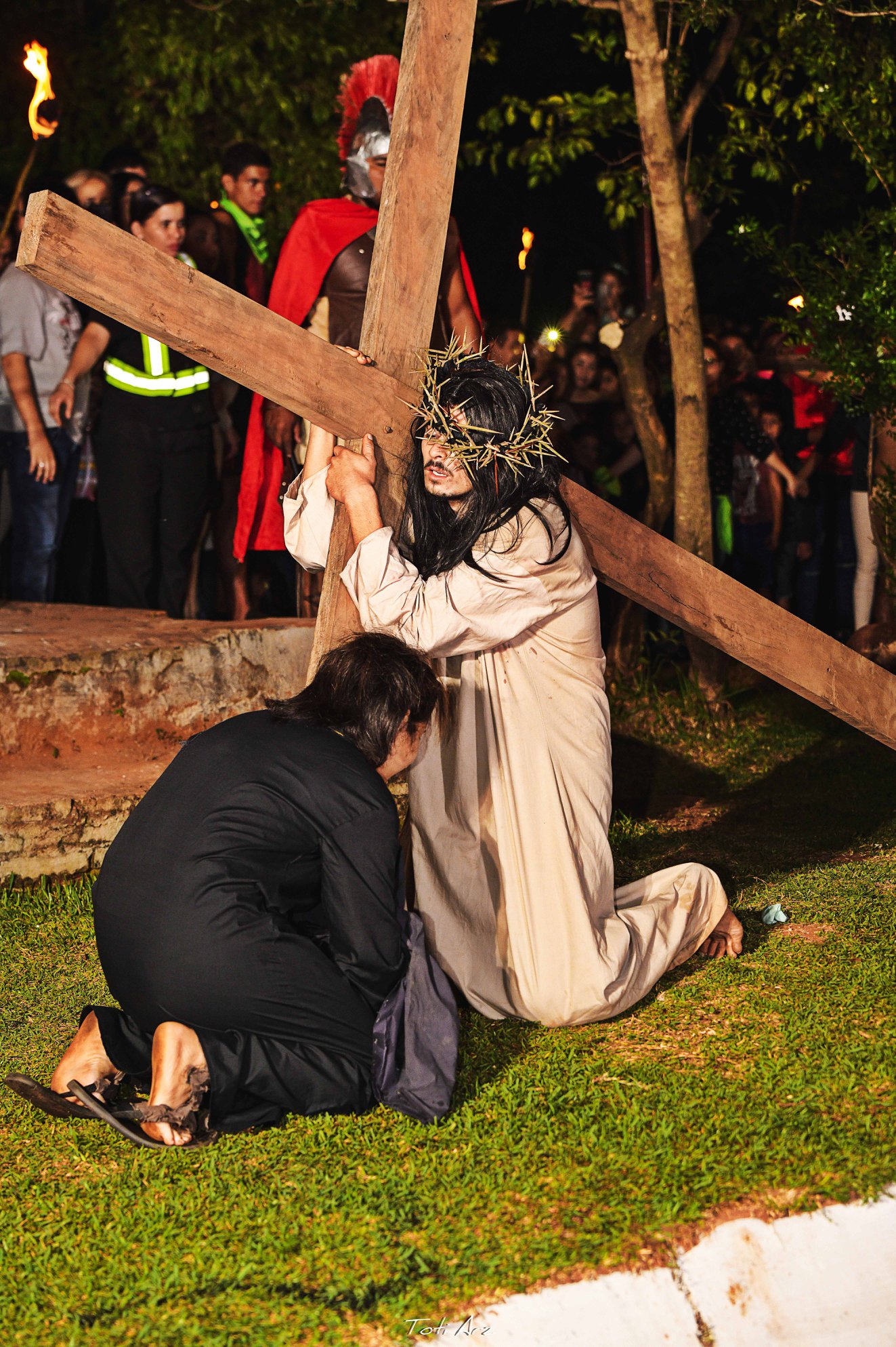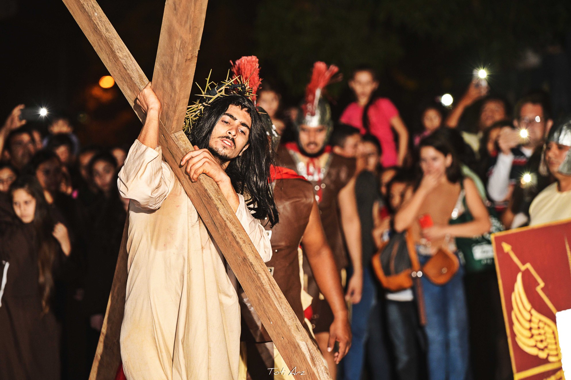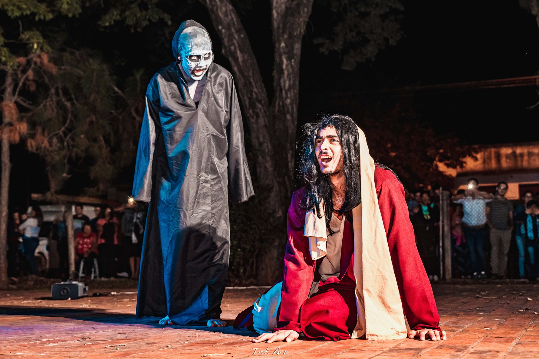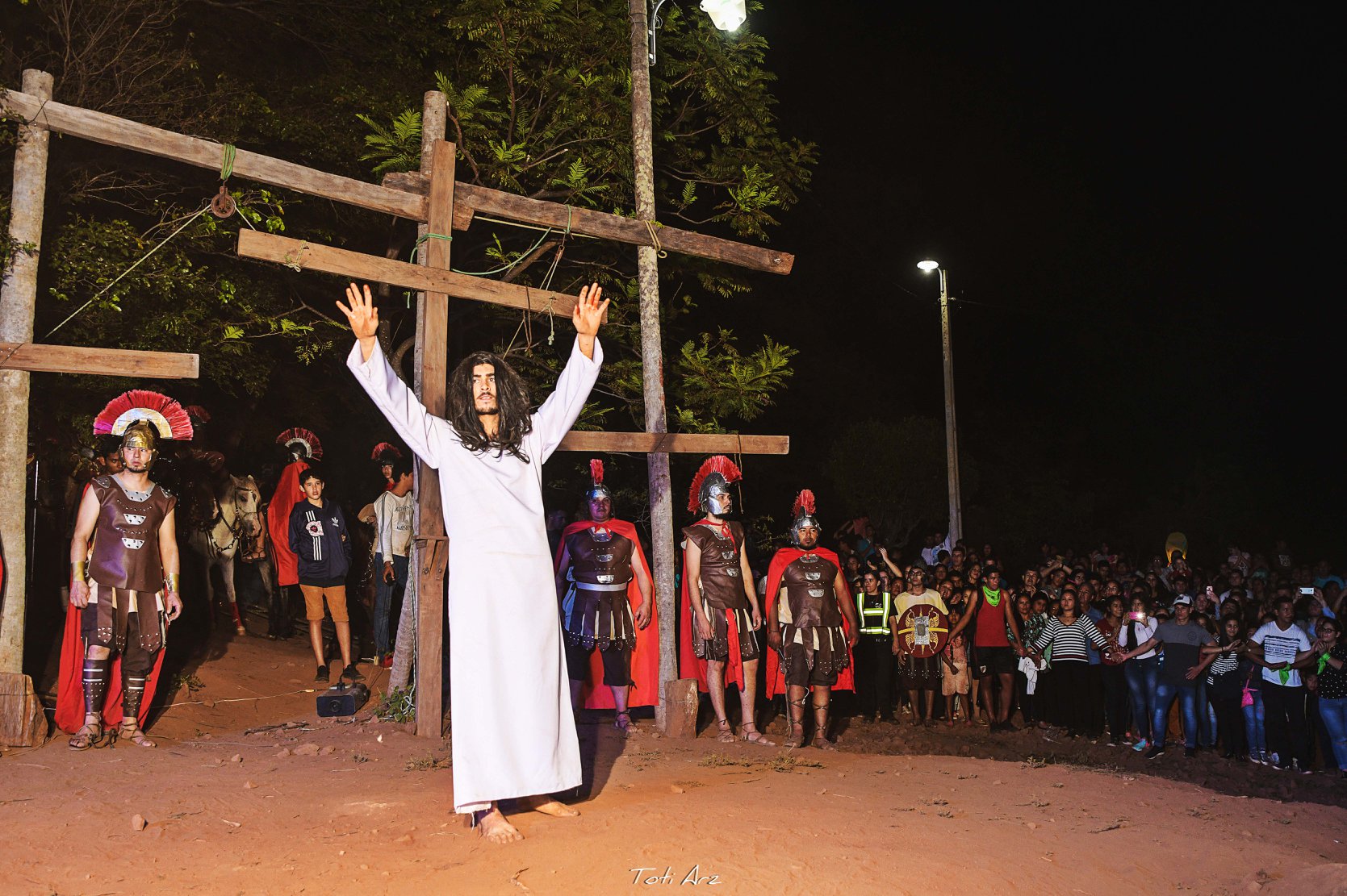 Compartimos las fotografías del exitoso Teatro Itinerante de Jueves Santo llevado a cabo por el Elenco Teatro YARA bajo la Dirección de Héctor Lozzca y la presentación estelar de actores y actrices yaguaroninos e invitados, jinetes de la ciudad y el Coro de Estacioneros de la Escuela de Música Maestro Cecilio Valiente. 10.000 personas de público y un despliegue de 100 artistas y 200 voluntarios e Instituciones aliadas para la cobertura de seguridad y servicios de emergencia. Este teatro es apoyado anualmente por la Municipalidad de Yaguarón en el marco del Programa Cultural de Semana Santa en Yaguarón. Fotos Propiedad de la Municipalidad de Yaguarón, tomadas por Toti Arz