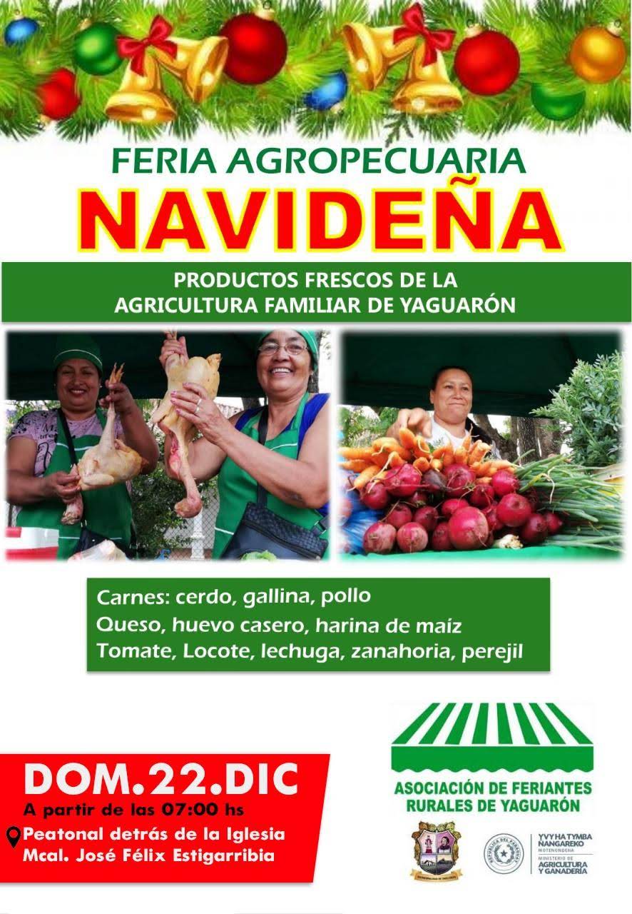 Gran feria agropecuaria de navidad. Este domingo «22 de diciembre» detrás del templo san buenaventura desde las 7 de la mañana hasta el medio día. Apoyemos todos lo que #yaguarón produce.