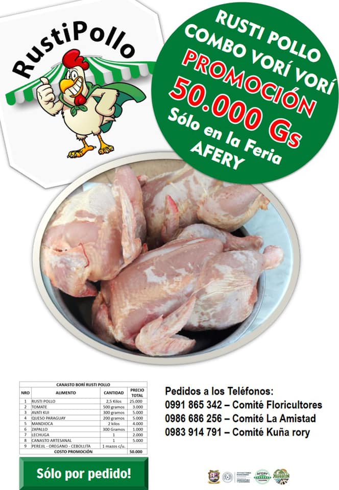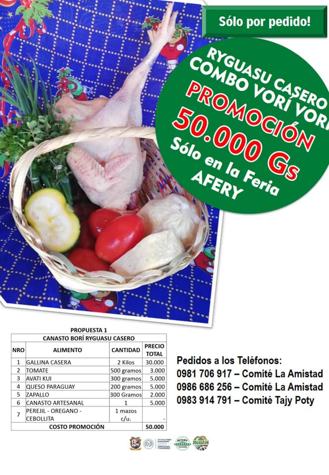Variados productos más como queso Paraguay, huevo casero, leche, tomate, locote, frutas, remedios para el tereré y mucho más. Los productos se entregarán el día de la Feria.