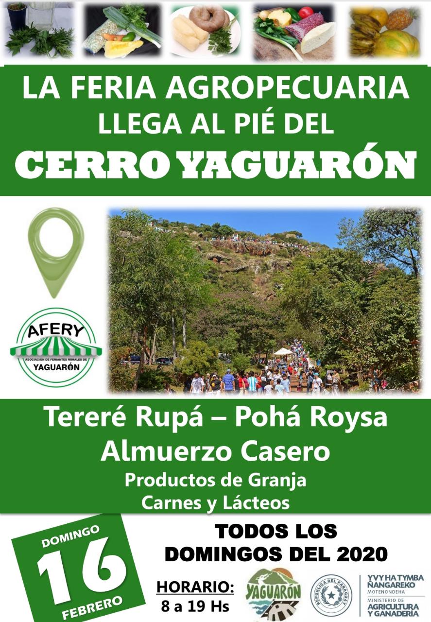 Este domingo 16 de febrero de 8 a 19 hs. arrancamos la feria agropecuaria al pié del Cerro, y todos los domingos estaremos ahí. APOYEMOS TODOS LA PRODUCCIÓN LOCAL Organizan: Municipalidad de Yaguarón y la AFERY.