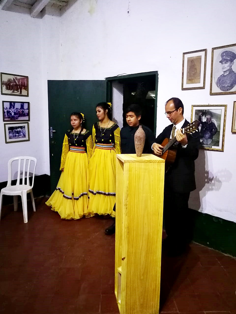 A las 18:30 se dio apertura del evento en el Museo del Veterano Yaguaronino de la Guerra del Chaco con la presentación del montaje de «Encrucijadas de la dulce tierra mía» con una visita guiada muy oportuna, uno de los montajes más significativos es un montículo de arena representando el mapa chaqueño, con una cruz impresa sobre la misma, por otra parte otro de los momentos más emotivos fue el gesto de recordación a los nuevos héroes, los combatientes del fuego en el incendio del Chaco y la recordación a los jóvenes voluntarios de distintas organizaciones de la comunidad, a más del guiado entre los objetos que conforman la colección.