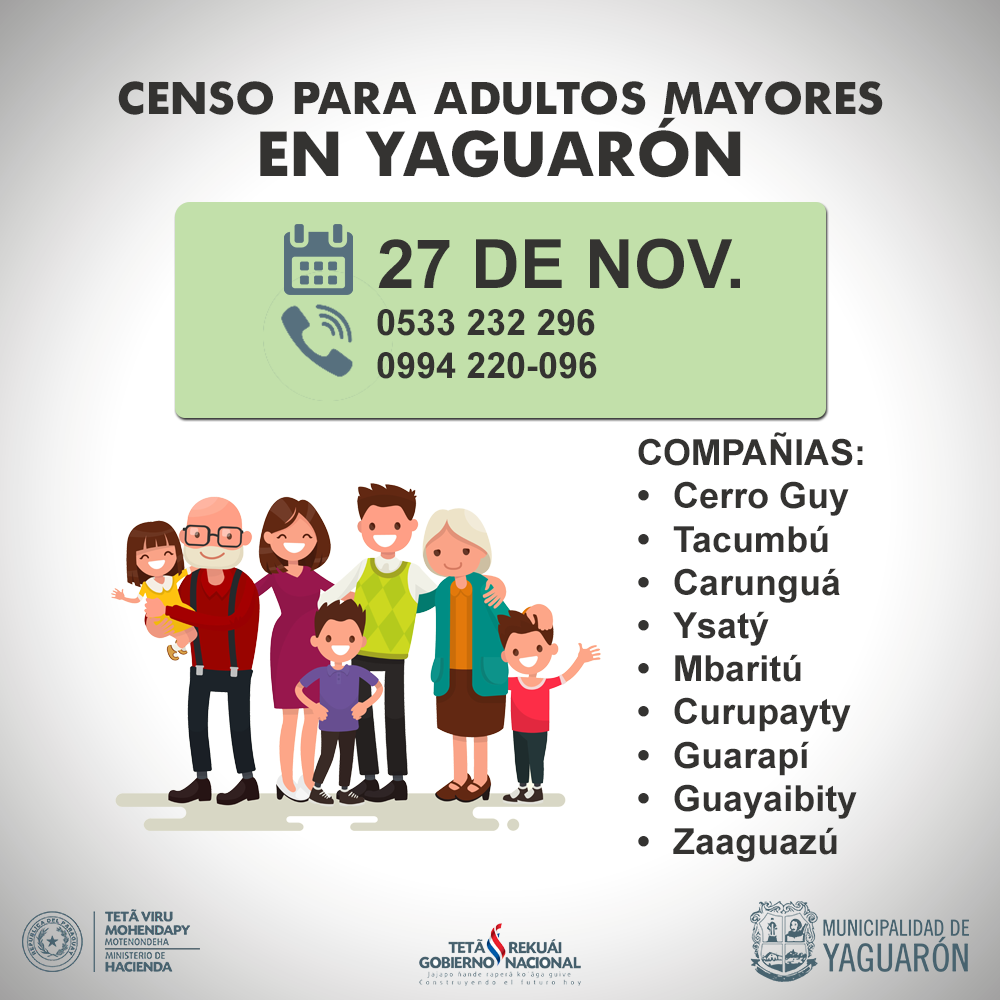 La municipalidad informa a la comunidad yaguaronina los lugares y días correspondientes que se estarían realizando el censo para adultos mayores.