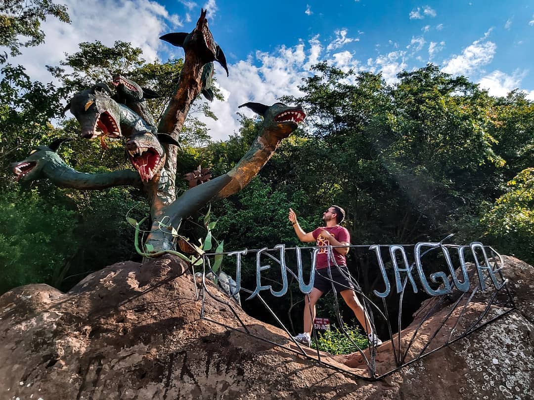 Ubicada al pie del Cerro en el Barrio San José, yergue la gran obra realizada por el Yaguaronino, Profesor Luis Delgado acompañado por el artista en hierro también Yaguaronino Elvio Jara, esta obra se hizo dentro del marco del desarrollo turístico y cultural de nuestra ciudad, teniendo en cuenta que Yaguarón es la cuna de la mitología guaraní.