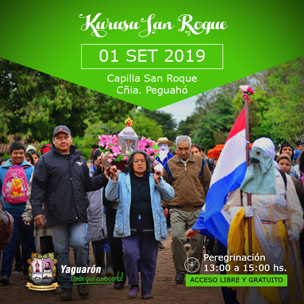 Domingo 1ro/09 13:00hs a 16:00 hs Ruta 1 desde la rotonda hasta el Km 52 y medio Peregrinación KURUSU SAN ROQUE por las calles de Yaguarón hasta la capilla antigua. Acompañado por cientos de Kambá.