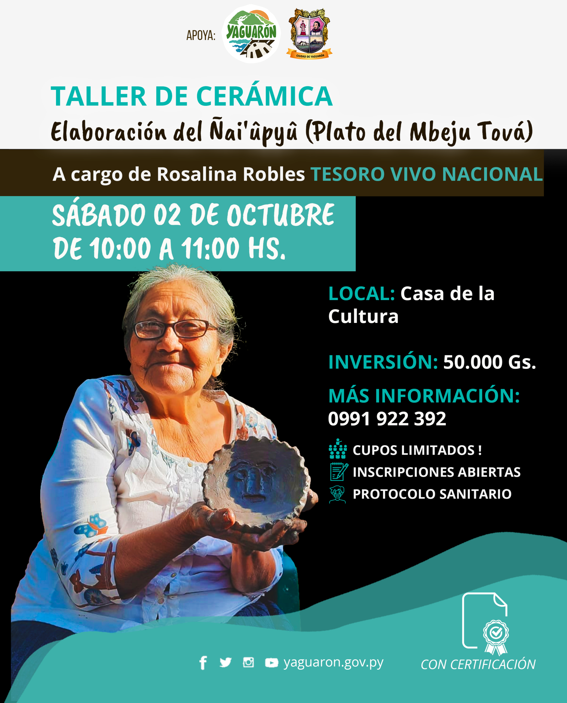 Oportunidad de aprendizaje sobre los saberes de las técnicas de Ñai´üpo (quehacer cerámico) con Doña Rosalina Robles «TESORO VIVO NACIONAL» declarado recientemente por la Secretaría Nacional de Cultura.
