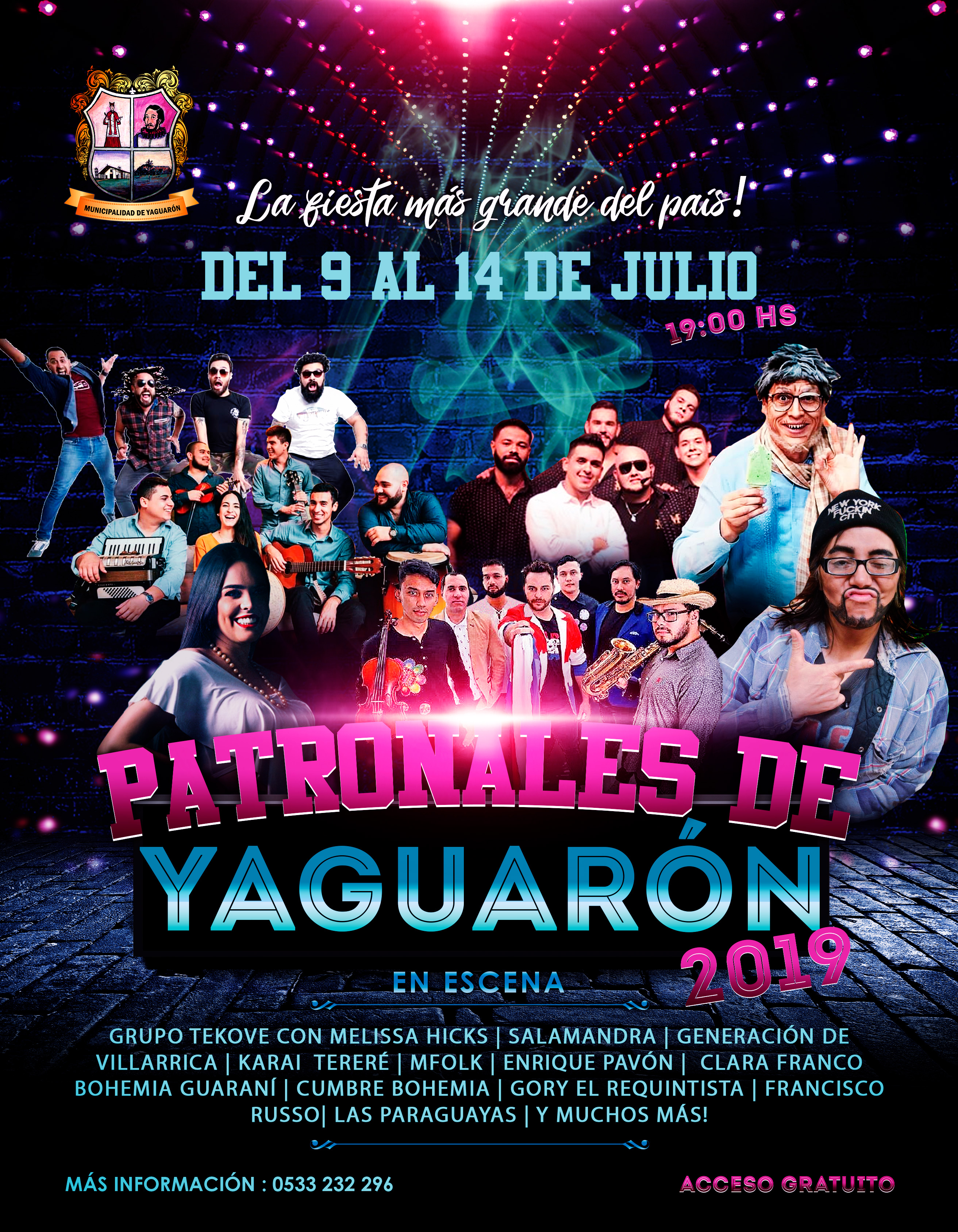 Programa religioso y varias actividades se preparan para la ocasión. Desde las 19:00 hs el calendario artístico está cargado de grandes referentes de la música, arte y show que no te los podes perder! Agenda ya, una semana de julio desde el 9 al 14 repleta de diversión y espectáculos que solo la fiesta más grande del país se prepara en Yaguarón cuna de mitos y leyendas. #PatronalesYaguarón2019