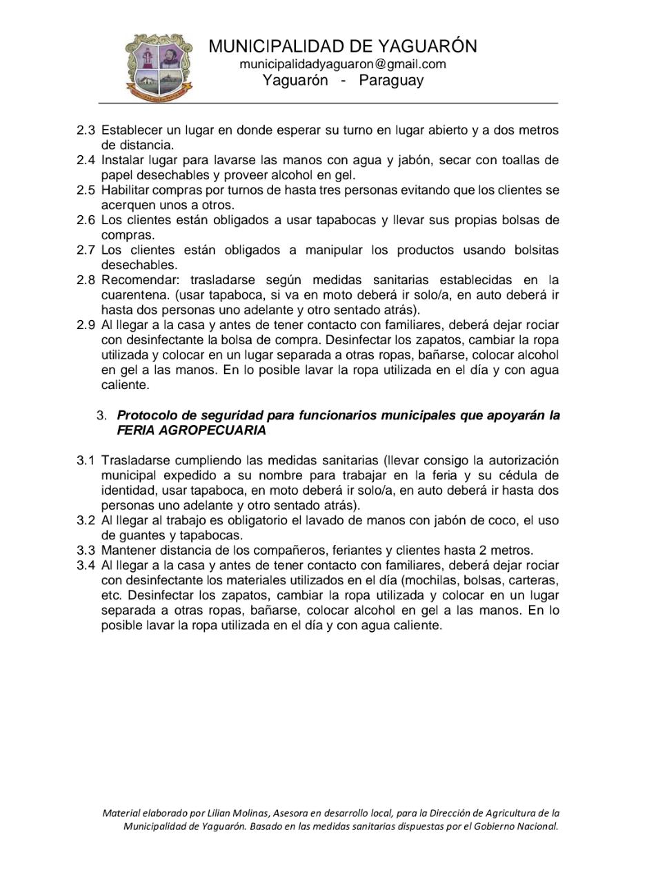 ESTAS SON LAS RECOMENDACIONES DE PROTOCOLO DE PREVENCIÓN DEL VIRUS COVID-19 PARA EL DIA DE LA FERIA.