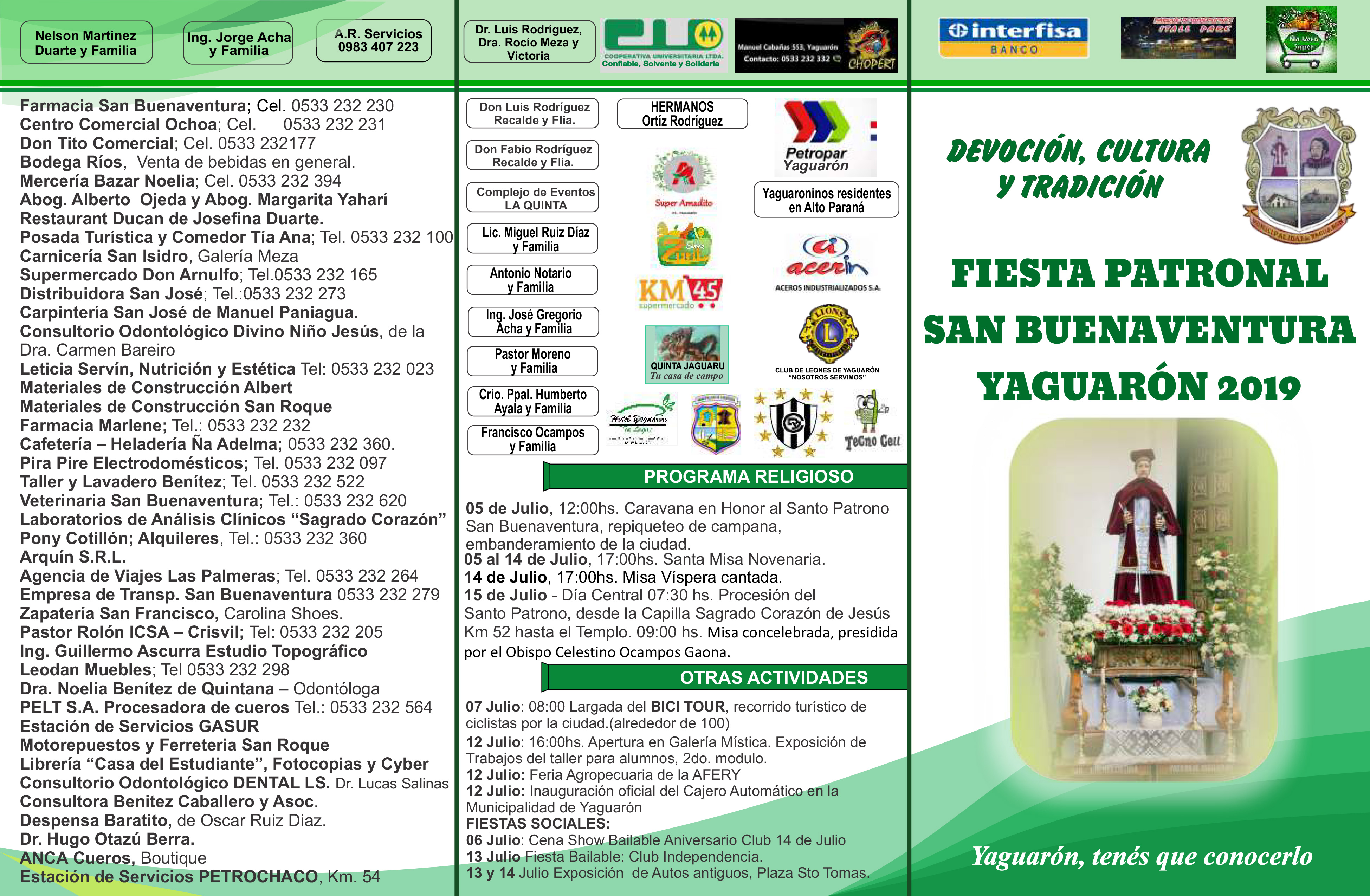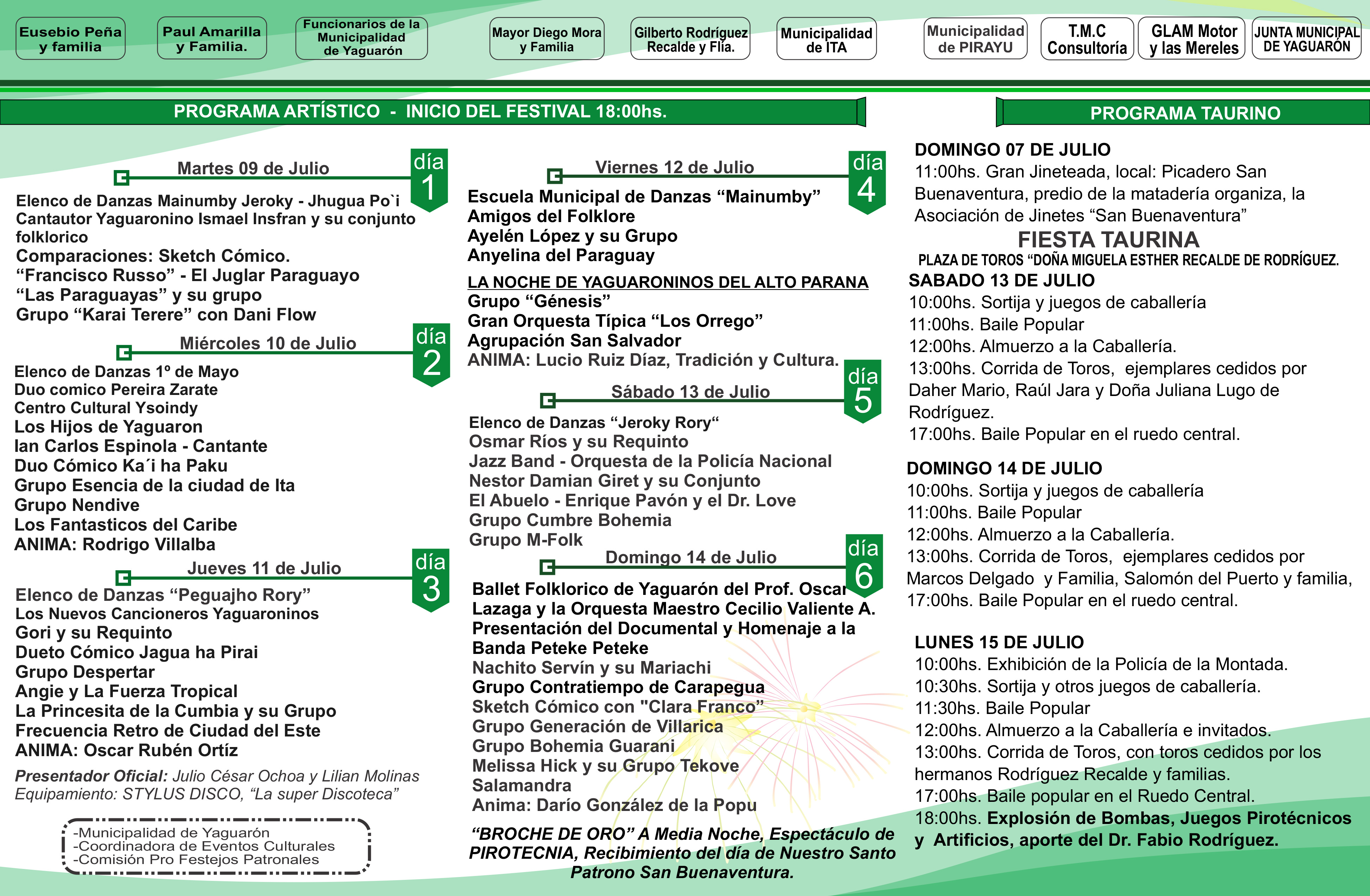 Desde el martes 9 al domingo 14 de julio, 18 hs. Patronales de Yaguarón!. Avda. peatonal detrás de la iglesia ¡ESTARÁ IMPERDIBLE!