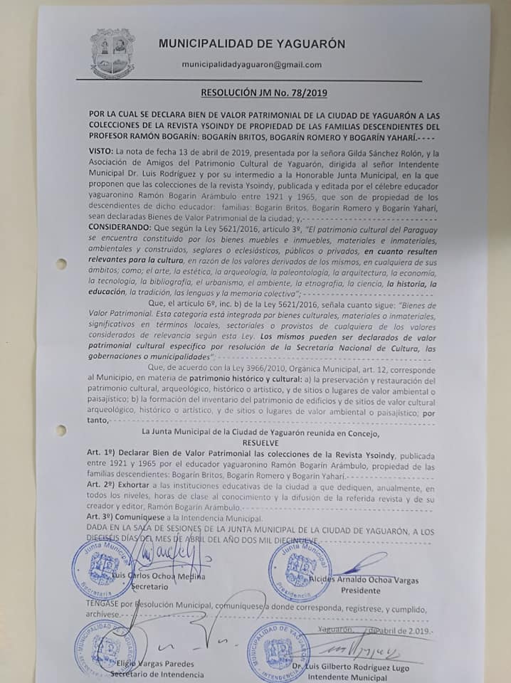 Recientemente, la Junta Municipal de Yaguarón, por decisión unánime, declaró la revista como Bien de Valor Patrimonial. Además, en breve, la edición digitalizada de la misma estará disponible mediante gestiones realizadas por la Secretaría Nacional de Cultura del Paraguay a través del Archivo Nacional de Asunción.