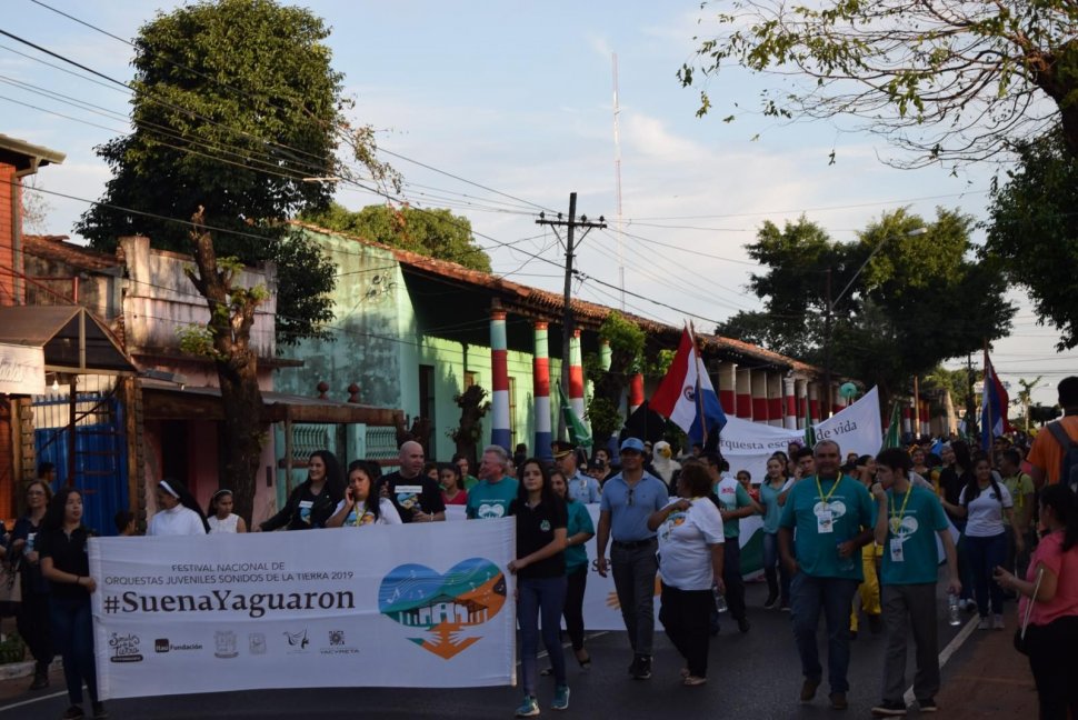 La 17ª edición del festival de talentos Sonidos de la Tierra reunió a delegaciones de 53 comunidades musicales que integran la Red Sonidos de la Tierra y dos agrupaciones de Chile y Argentina. El primer día del encuentro consistió en la capacitación e intercambio de experiencias. Posteriormente, sobre la calzada de la ruta I Mariscal Francisco Solano López, se desarrolló el desfile de los pueblos, donde los jóvenes con cánticos, portando sus instrumentos musicales y las banderas paraguaya y de sus respectivas escuelas de música, llegaron hasta el templo de Yaguarón donde formaron un corazón y abrazaron la iglesia en defensa de uno de los patrimonios históricos de nuestro país.